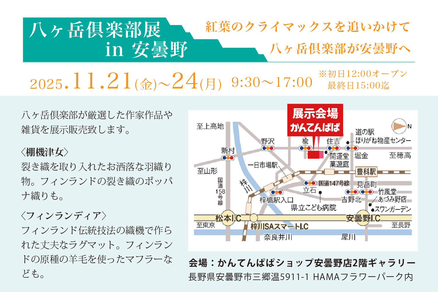 | 開催場所 | かんてんぱぱショップ安曇野店2階ギャラリー |