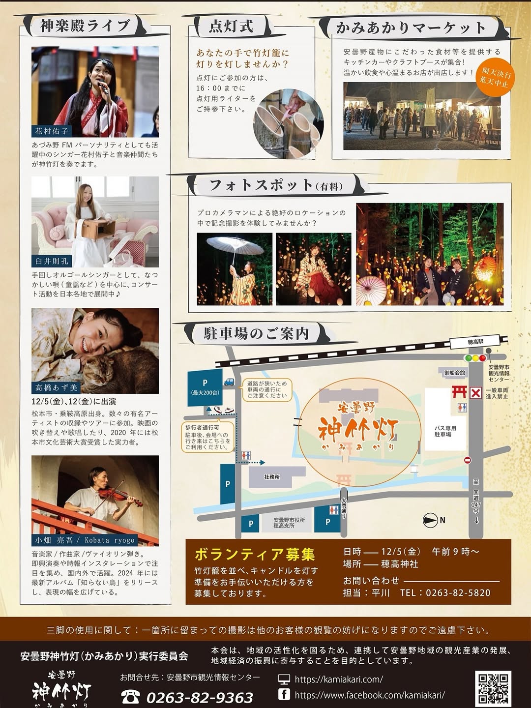 | 連絡先 | (平日9時〜17時)TEL:0263-83-7065 (開催期間中)TEL:080-4073-8075 |
