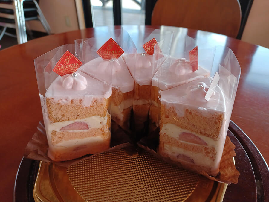 しっとりふわふわのシフォンケーキと、シフォンを使ったショートケーキの専門店です。テイクアウトOK、ランチメニューもあります。