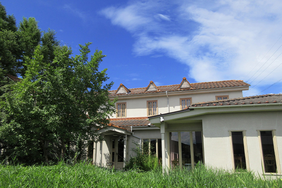 北アルプスを望む田園の中、赤い薪ストーブと緑の芝生に囲まれて、ごゆっくりパスタとスイーツをお召し上がり下さい。スイーツのテイクアウトのみの利用も可能です。