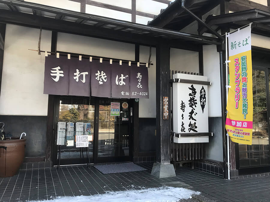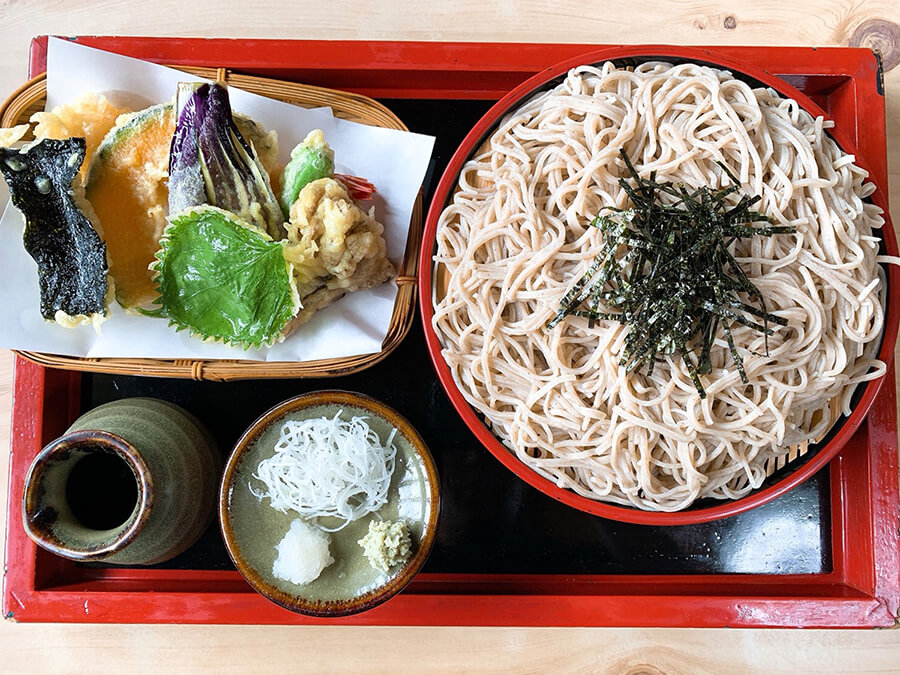 十割そばを独自製法によりいつ来てもおいしくお召し上がりいただけます。 旬の食材を使った天ぷらや、信州ならではのメニューも豊富。 オリンピック道路沿いでアクセスも抜群!