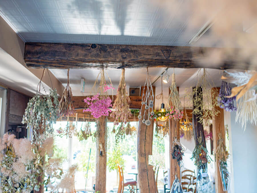 米粉100%のクレープや、グルテンフリーのお食事などを提供しています。厳選したクラフト雑貨の販売やワークショップも開催。宿泊施設も併設しています。