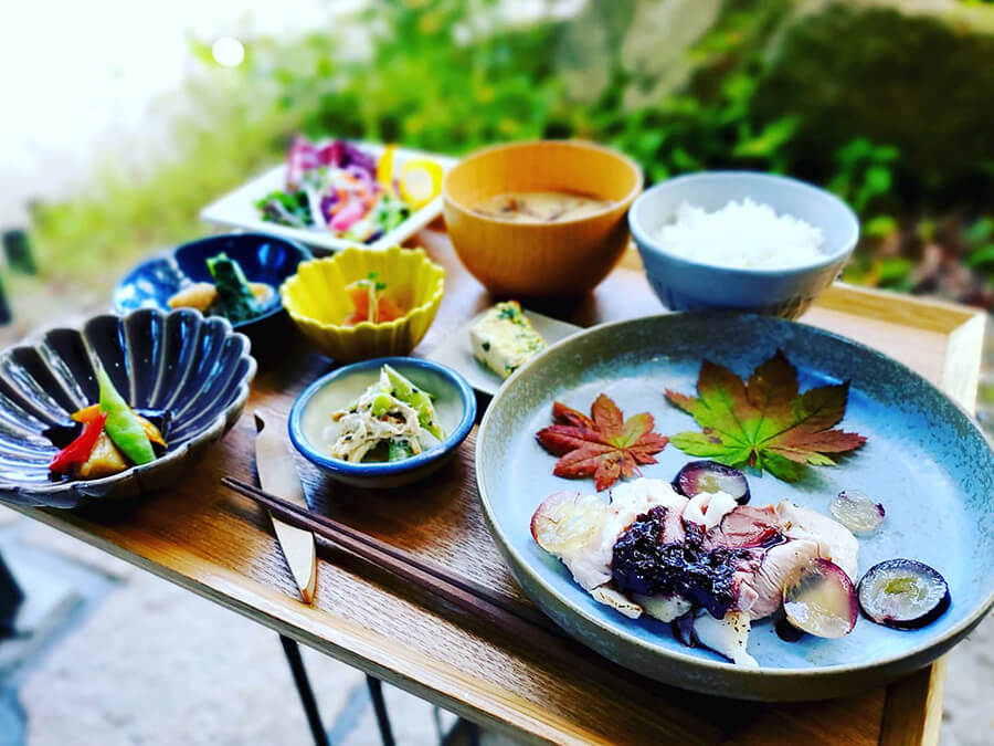 自家菜園で採れた旬の食材を中心に一品一品心を込めて手作りした家庭料理。