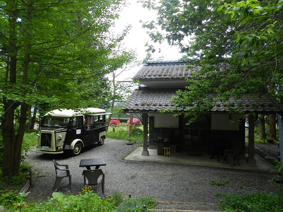 小さな蔵に寄り添うフランスのレトロなカフェバスブリスでは淹れたて珈琲とアップルパイをご提供。蔵内でもおくつろぎ下さいませ。