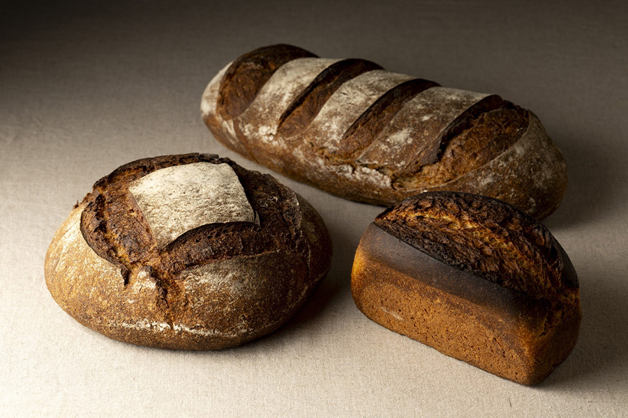 耐火レンガを積みあげた自作の薪窯で焼く、大きな田舎パン(カンパーニュ)の店です。地元の小麦を自家製粉し、香ばしく焼き上げたパンをお楽しみください。