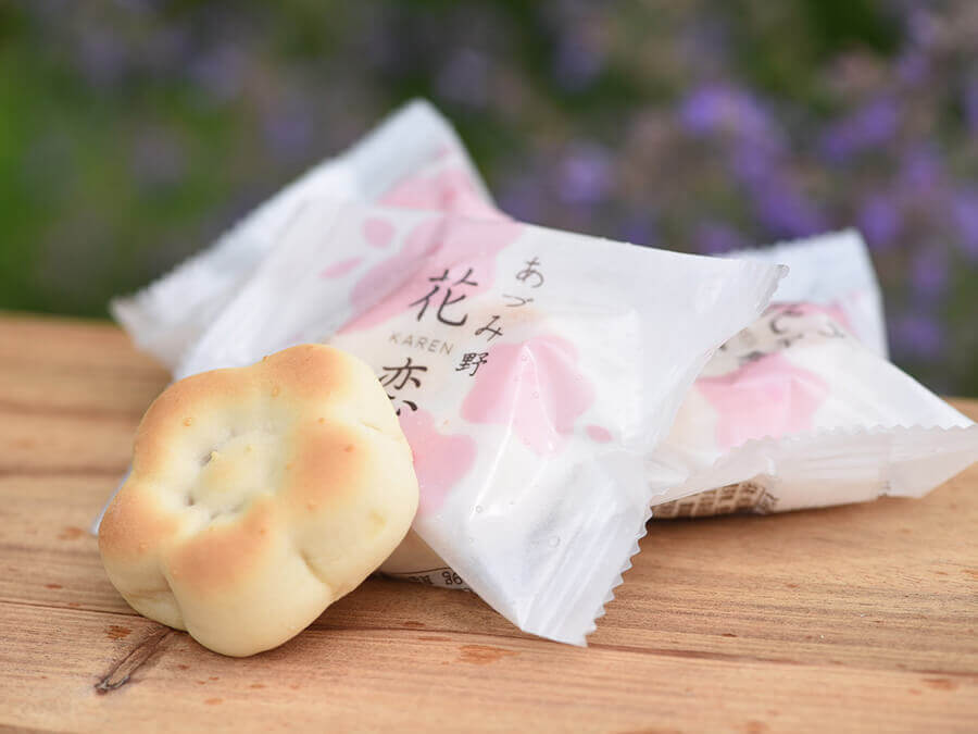 旬の厳選した素材と伝統の技を生かしたお菓子は、信州からのお土産にピッタリです。あづみ野花恋は当店一番人気の商品です。ぜひご賞味ください。