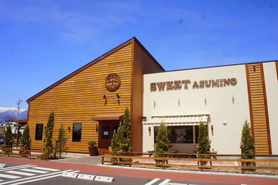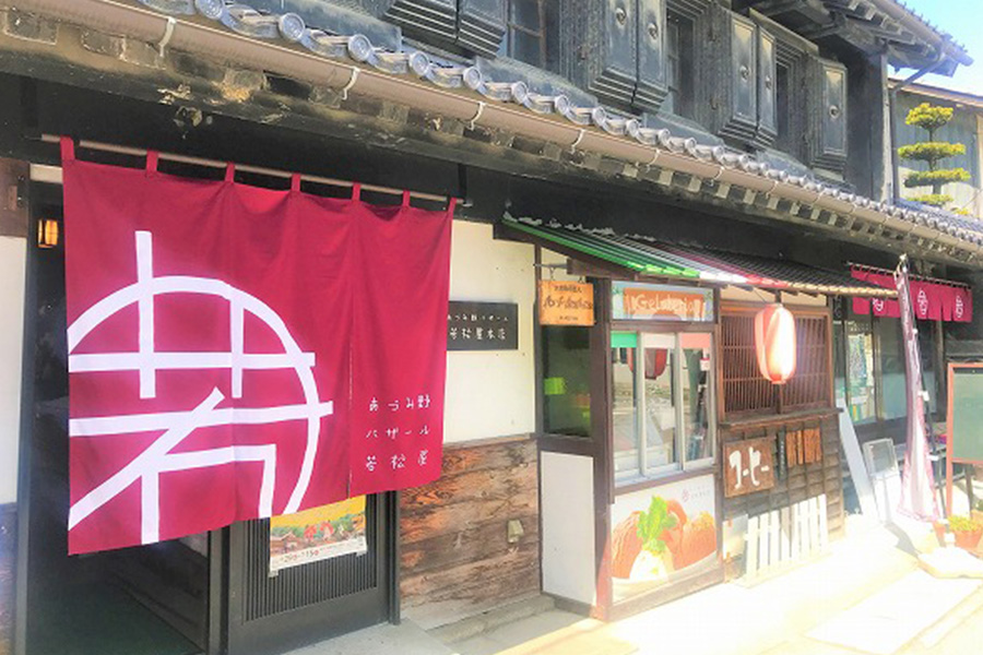 穂高駅から北東約800m。塩の道街道穂高宿の旧街道沿いに建つ明治の木造建築「見世蔵づくり」はフォトスポット。自家焙煎コーヒー250円、おやき、ピザなどのカフェとハンドメイド、雑貨の店。