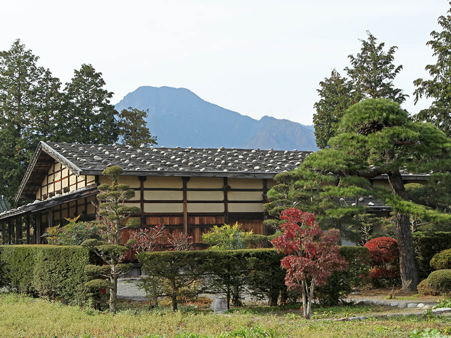 江戸初期に造られた池泉観賞式庭園を見渡せる豪壮な書院の間には、松本藩主や登山家ウエストンも逗留。 毎週火曜日、12月~3月は休館。